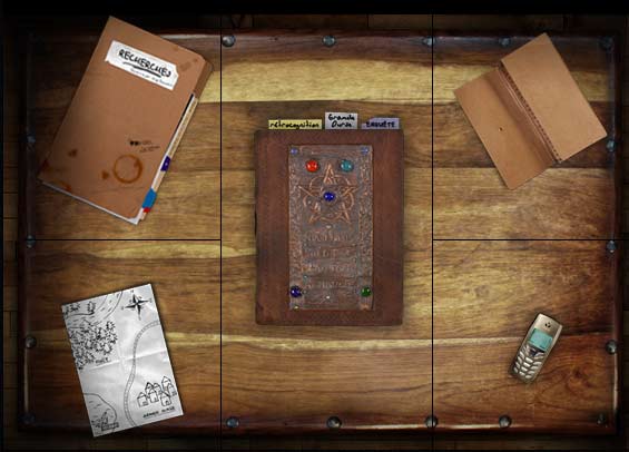| Le grimoire | Dossier Recherches | Carte Evolutive | Fiches Personnages | Cellulaire (cyber enquête)